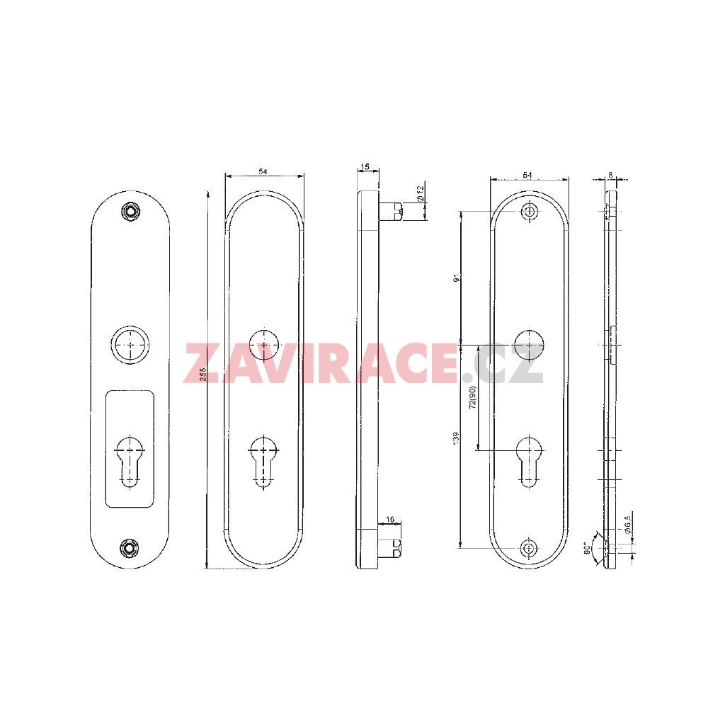 - hliníkové bezpečnostní kování s oválným štítem FAB BK325/72, RC3/BT3