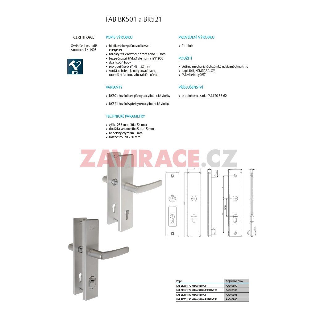 - hliníkové bezpečnostní kování s hranatým štítem FAB BK521/90, RC3/BT3