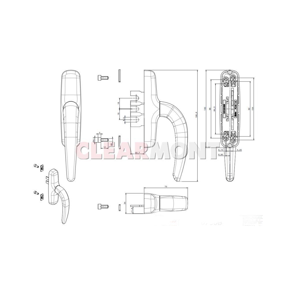 - Rukojeť a tělo kliky je z tlakově litého hliníku, pružiny a pastorek z pozinkované oceli, hřeben z nerez oceli, montážní podložka z nylonu a upeňovací protiplechy z nerezové oceli.