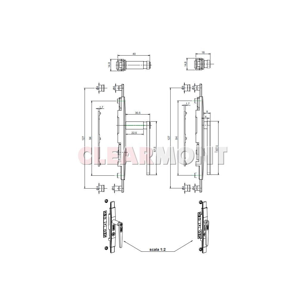 - Převod / klika pro otevírání štulpového křídla u dvoukřídlých hliníkových oken či balkonových dveří.